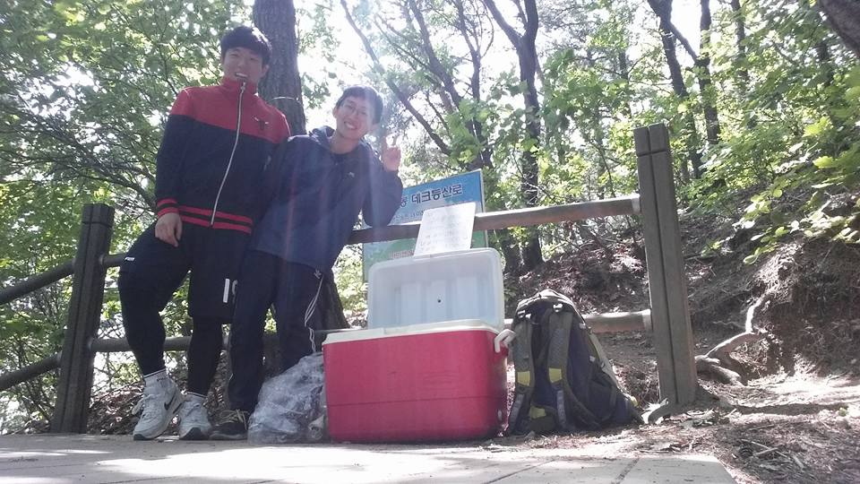 우여곡절 끝에 계단 끝 쪽에서 장사를 시작했다. 얼음물, 맥주, 막걸리, 음료수, 초콜릿이 있었는데 생각보다 골고루 팔렸다. 대강 고객들을 봤을 때 갈증이라는 니즈로 산 사람은 85%, 나머지 15%는 학생효과. 대부분 나이가 있으신 등산객분들이 사주셨으며, 고생한다고 김밥과 차도 건네주셨다. 따뜻한 차 한잔과 따뜻한 인심에 이전에 겪었던 불편함이 사르륵 가셨다.