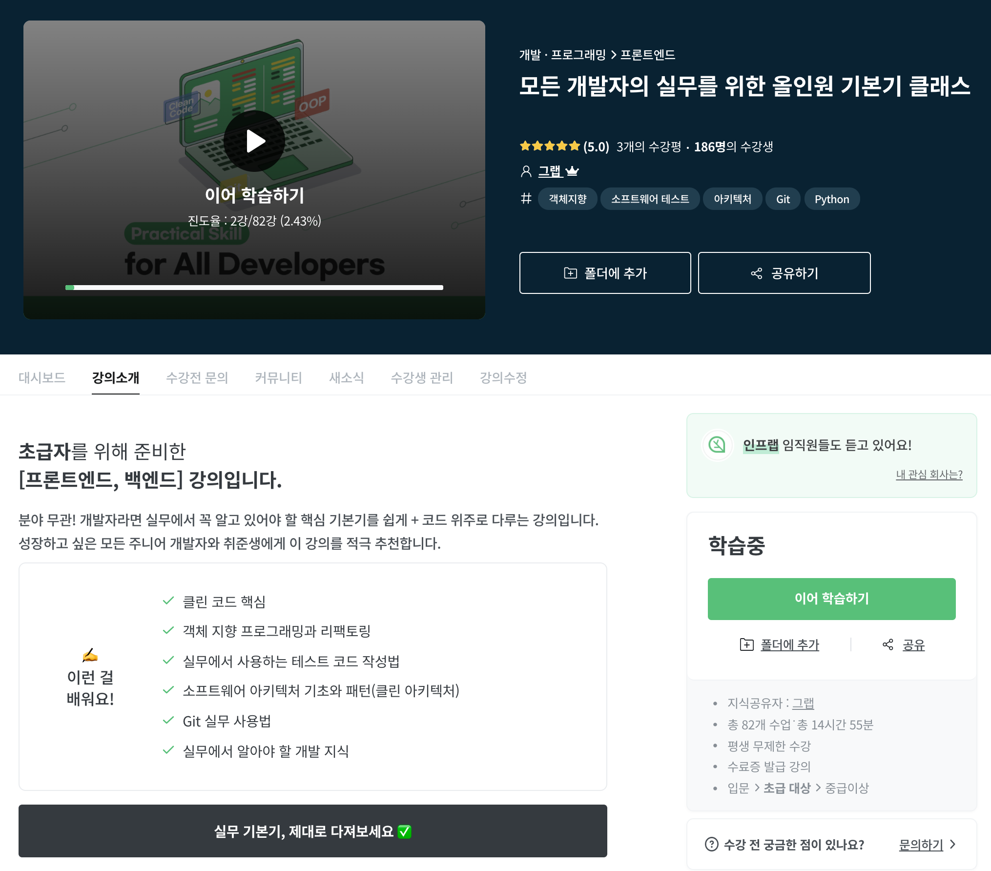 인프런에 모든 개발자의 실무를 위한 올인원 기본기 클래스 강의를 런칭하였습니다.