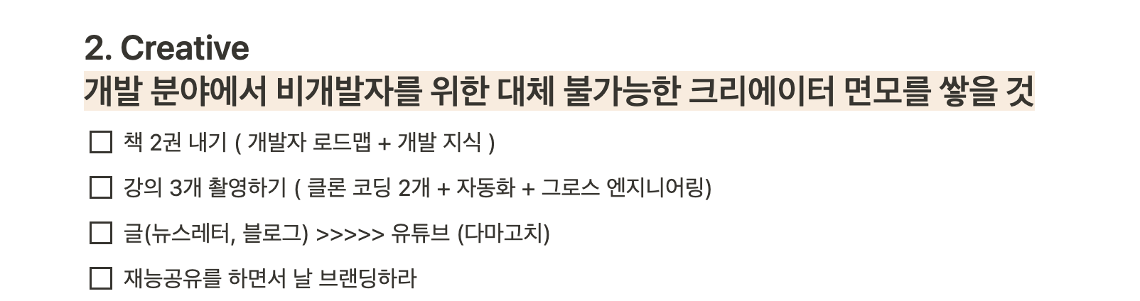 2021년 초 세웠던 계획을 보자면 개발 크리에이터의 방향성이 꽤나 강했습니다. 책도 쓰고 강의도 촬영하고 뉴스레터까지...